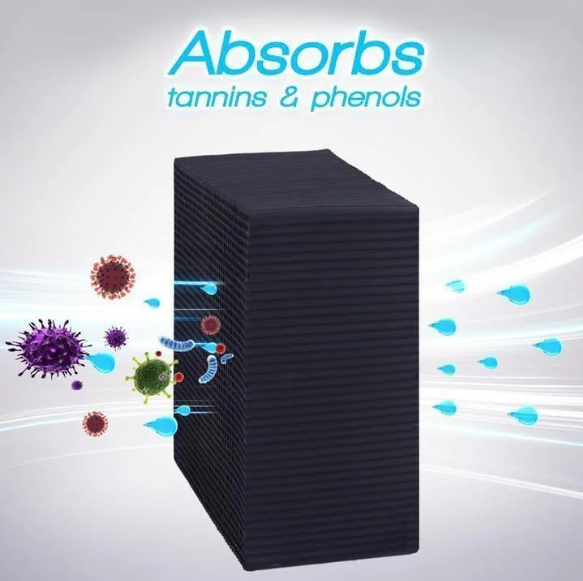 Oczyszczacz składa się z ultrachłonnego węgla aktywnego upakowanego w strukturę plastra miodu pełną mikro tuneli. Wysoce porowaty materiał ma dużą powierzchnię i skutecznie pochłania toksyczne zanieczyszczenia z wody. Oczyszczacz powietrza działa 24 godziny na dobę. Działa dzięki swoim fizycznym właściwościom czyszczącym. Nie wymaga energii elektrycznej i nie opiera się na szkodliwych chemikaliach;