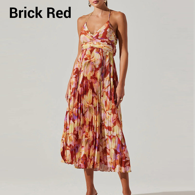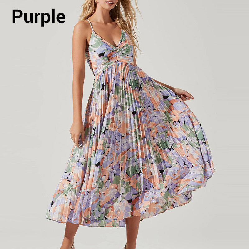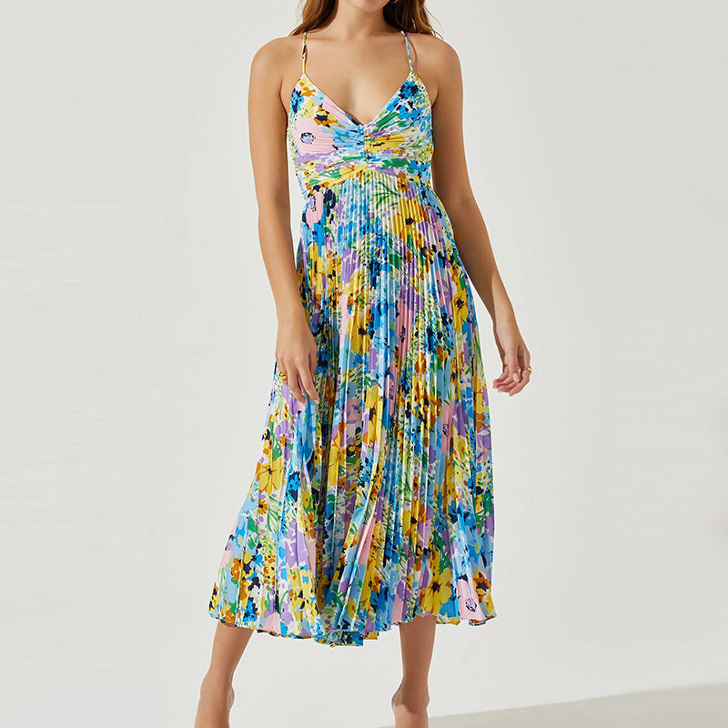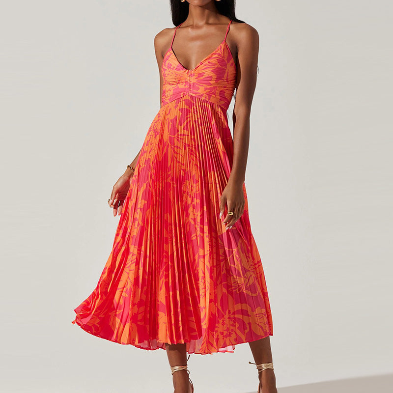 Zawartość opakowania: 1*Modne damskie sukienki bez rękawów z dekoltem w serek i nadrukiem