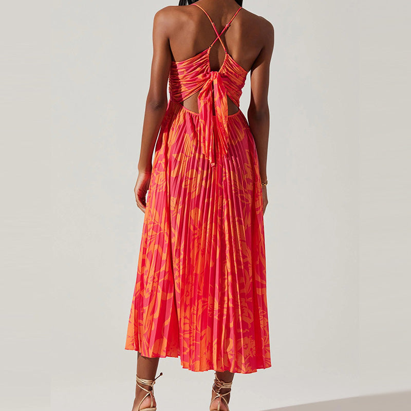 SZYK I STYLOWY DESIGN:Stylowy krój na cienkich ramiączkach idealnie nadaje się na upały, wyszczuplając obojczyki, a odkryty tył podkreśla naturalną sylwetkę.