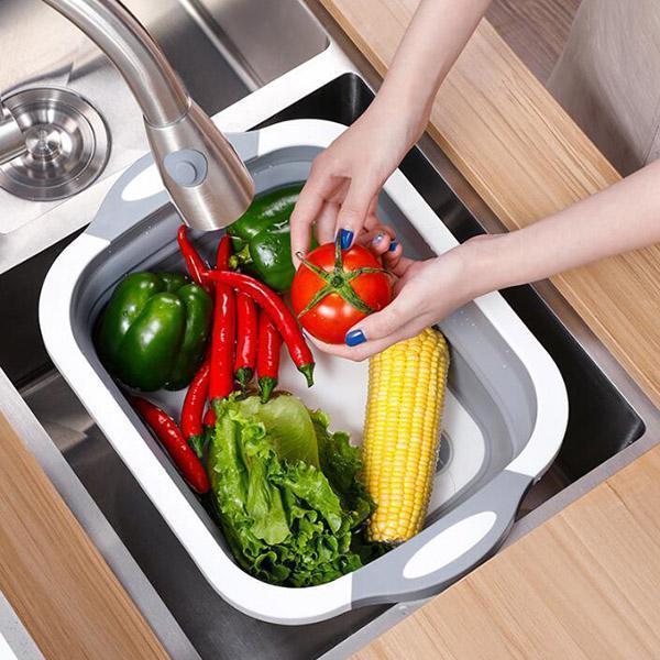- Nowy, ulepszony, wielofunkcyjny, składany kosz do kontaktu z żywnością 4 w 1 z korkiem spustowym. Po złożeniu może służyć jako deska do krojenia, jako umywalka, kosz ociekowy i kosz do przechowywania po otwarciu. To niezbędny pomocnik w Twojej kuchni!