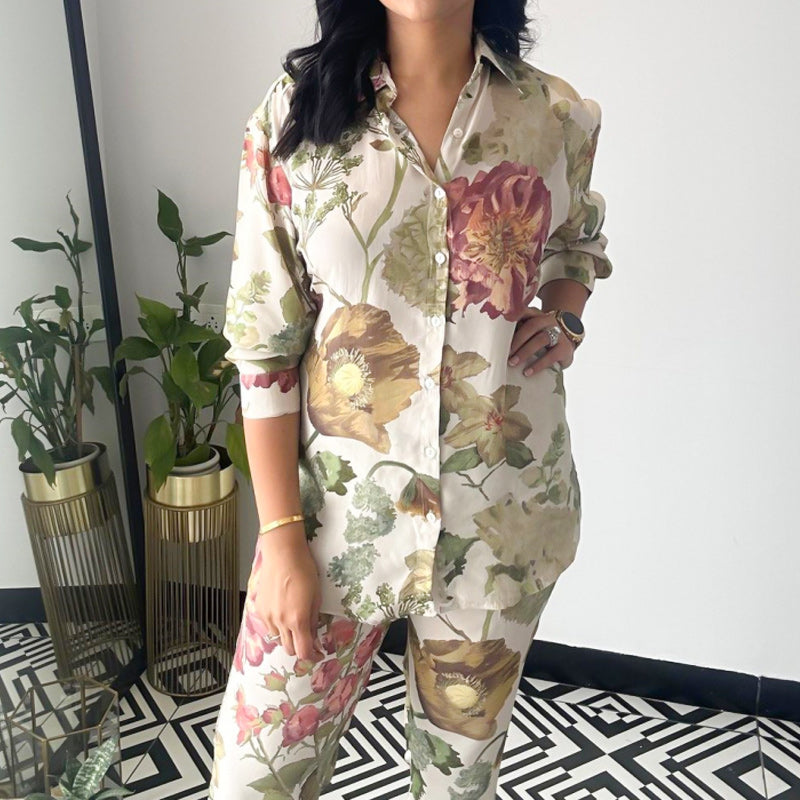 Pakiet zawiera: 1× dwuczęściowy zestaw z nadrukiem w kwiaty