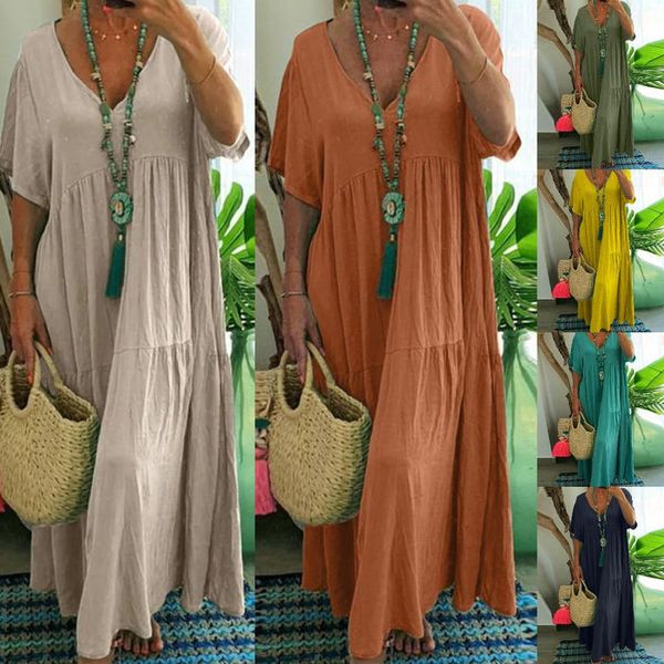 Zapoznaj się z naszą swobodną damską sukienką maxi z krótkim rękawem, idealną na wyjście na plażę lub imprezę w stylu vintage. Wykonana z naturalnych włókien i bawełny, ta sukienka jest bardzo wygodna i trwała.