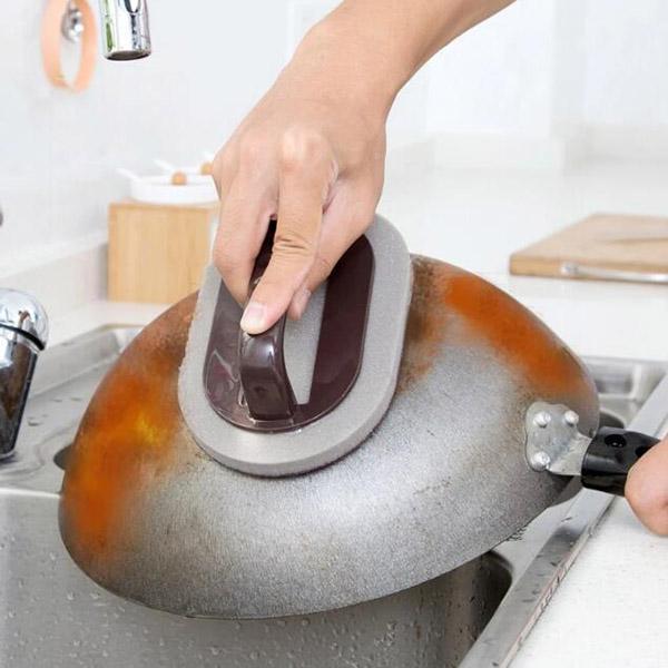 Przed użyciem zwilż naczynie i gąbkę. Dodaj trochę detergentu dla lepszego efektu. Z łatwością usuwa rdzę i plamy oleju z dna garnka, dzięki czemu staje się on nowszy niż wcześniej.