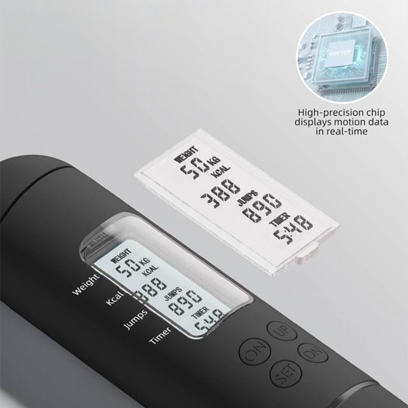 WYŚWIETLACZ HD Z PISZĄCYM ALERTEM - Wyposażona w czytelny ekran LCD skakanka wyraźnie wyświetla dane treningowe, w tym liczbę skoków, czas i spalone kalorie. Dzięki systemowi alarmów dźwiękowych będziesz na bieżąco informowany o swoich postępach bez konieczności ciągłego sprawdzania ekranu.