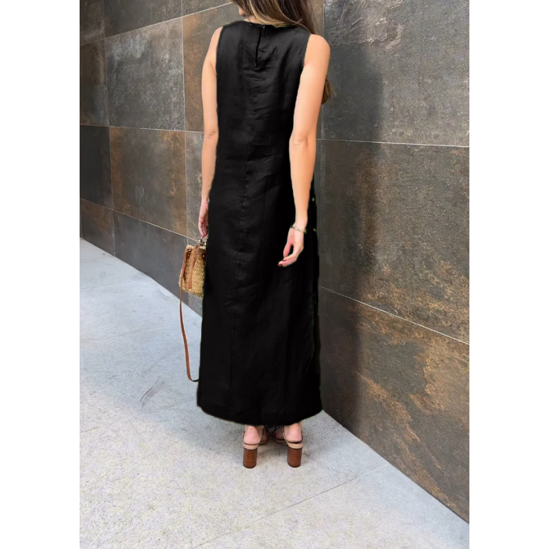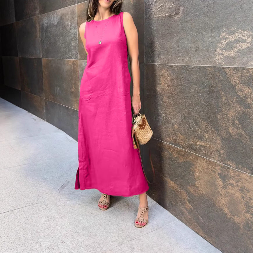 1 * Damska sukienka bez rękawów w jednolitym kolorze z rozcięciem z boku.