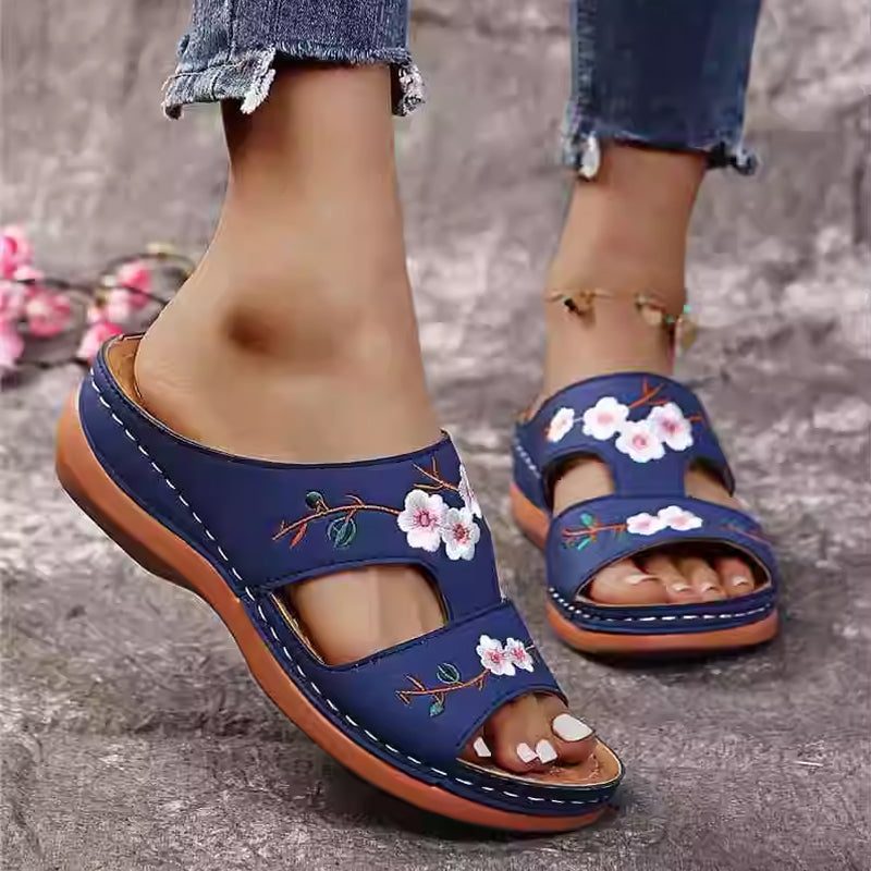 Wygodne damskie pantofle na koturnie z odkrytymi palcami