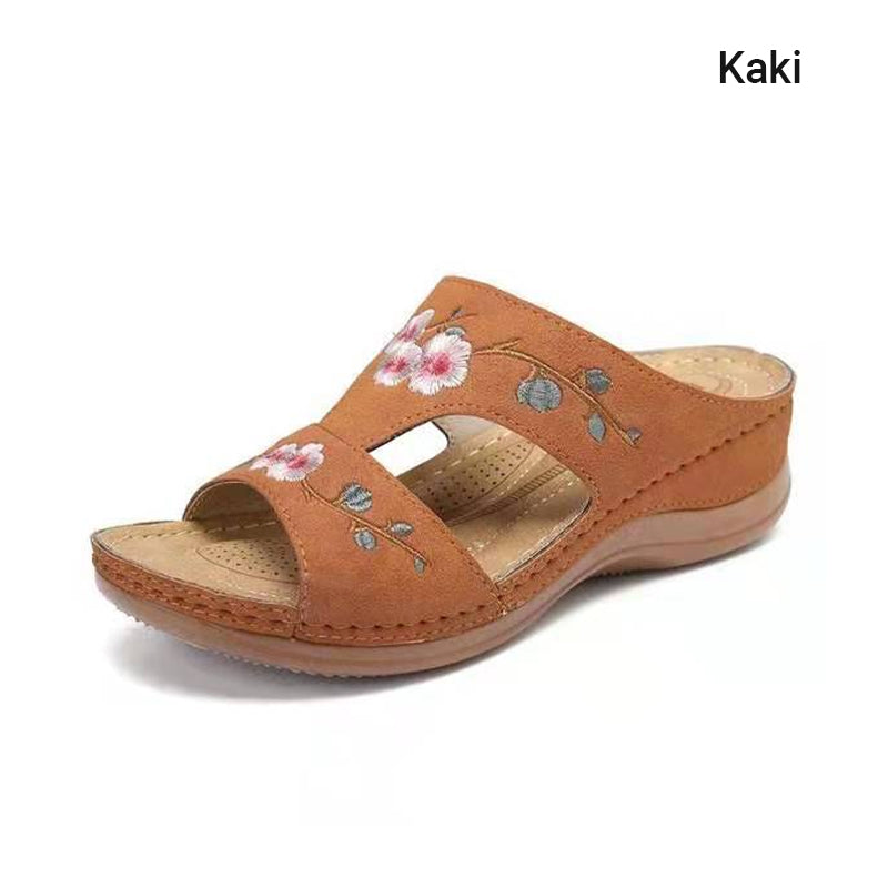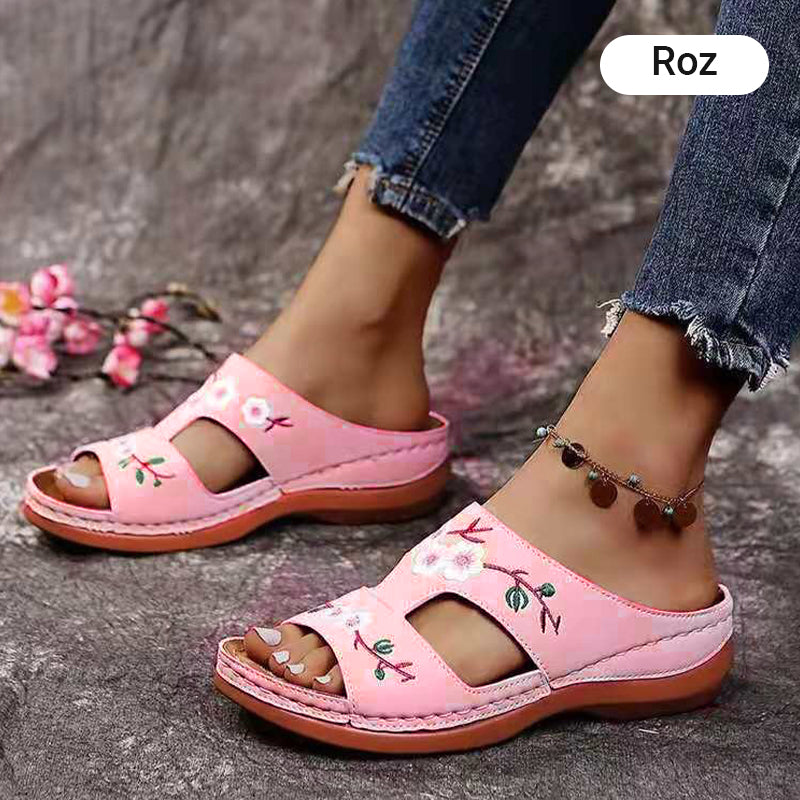 Pakiet zawiera:1 para * Wygodne damskie pantofle na koturnie z odkrytymi palcami na obcasie