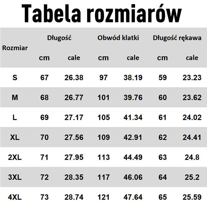 Rozmiary: S, M, L, XL, 2XL, 3XL, 4XL