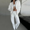 Damski Dwuczęściowy Zestaw z Luźnym Krojem - Kurtka na Zamek i Spodnie z Szeroką Nogawką
