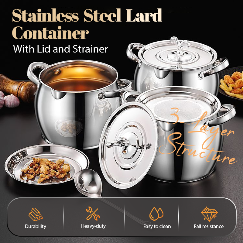 Pojemnik na smalec ze stali nierdzewnej z pokrywką i sitkiem
