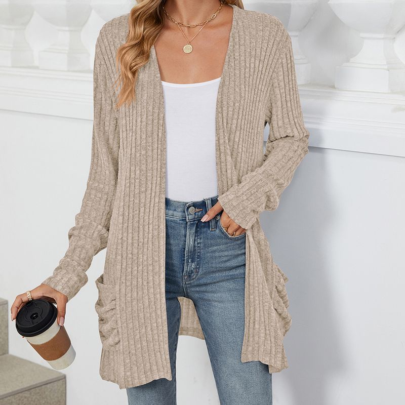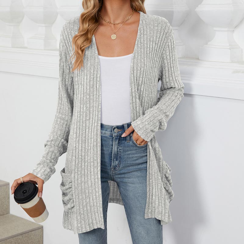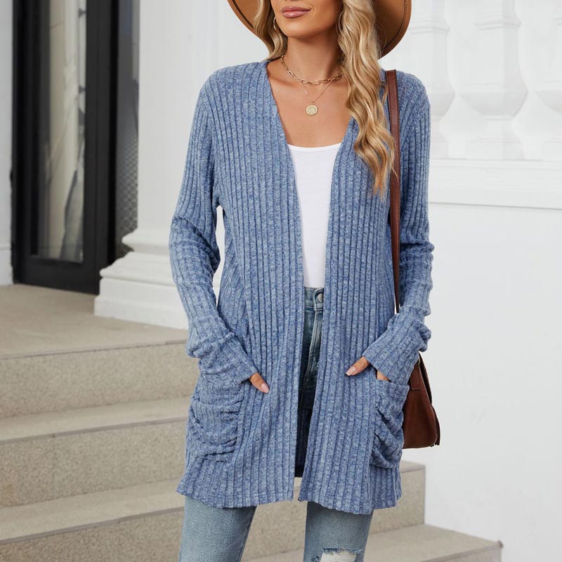 Pakiet zawiera: 1 * Damski przytulny jesienny kardigan z prążkowanej dzianiny