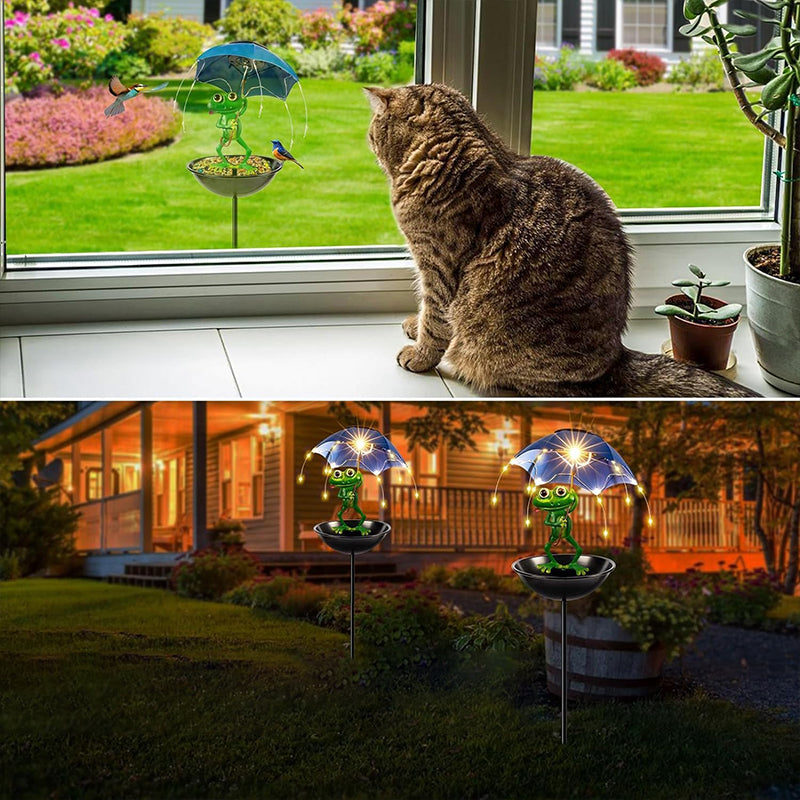 MAGICZNA LAMPKA NOCNA – Zabawna żaba z psotnym językiem i parasolem doda wyobraźni Twojemu ogrodowi i stworzy magiczne światło w nocy, zapewniając czarującą atmosferę na zewnątrz.