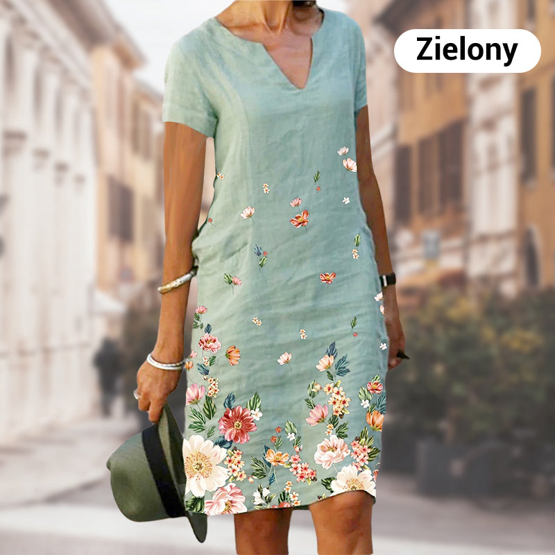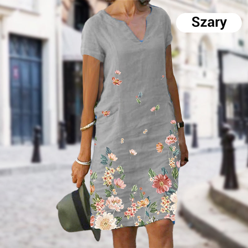Sukienka Damska Casual Elegancka z Nadrukiem i Dekoltem w Serek