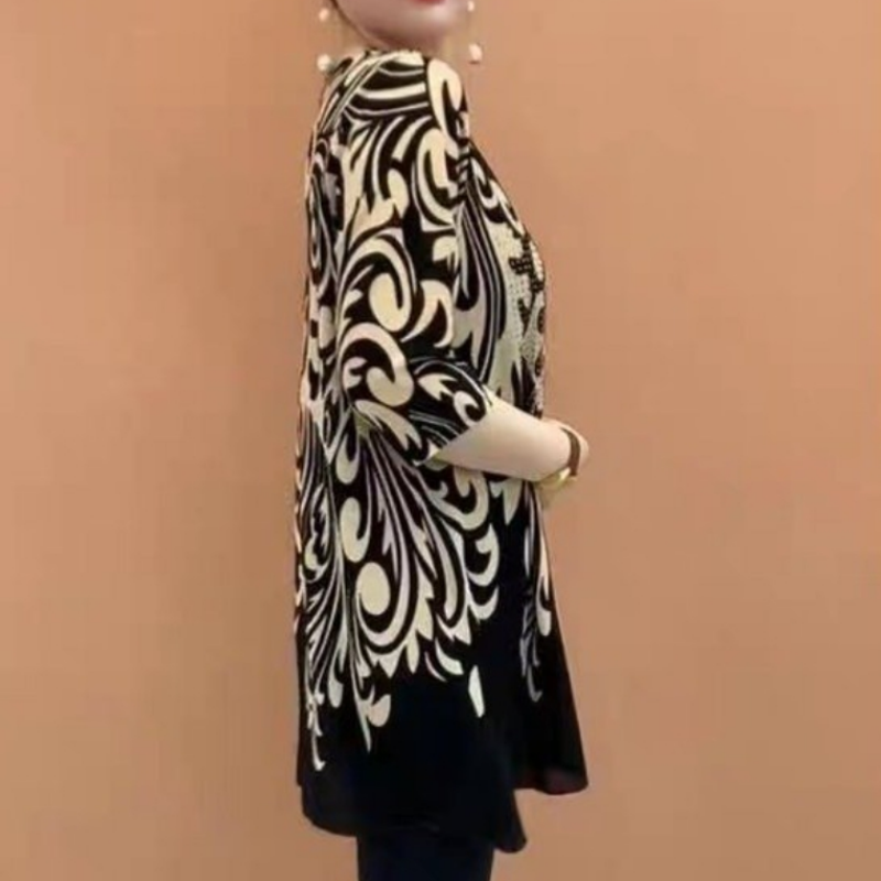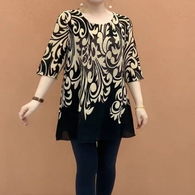 Damski luźny top z nadrukiem i okrągłym dekoltem