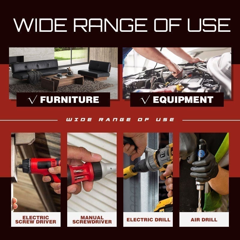 Nadaje się do wkrętarek elektrycznych, wkrętarek ręcznych, wiertarek elektrycznych i wiertarek pneumatycznych. Idealny do pracy przy motocyklach, rowerach i meblach w celu łatwej naprawy i demontażu mebli i sprzętu.