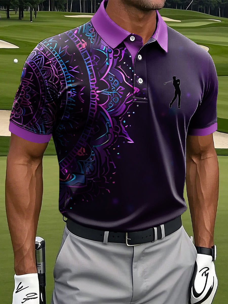 Męska koszulka polo biznesowa z nadrukiem abstrakcyjnym w stylu retro