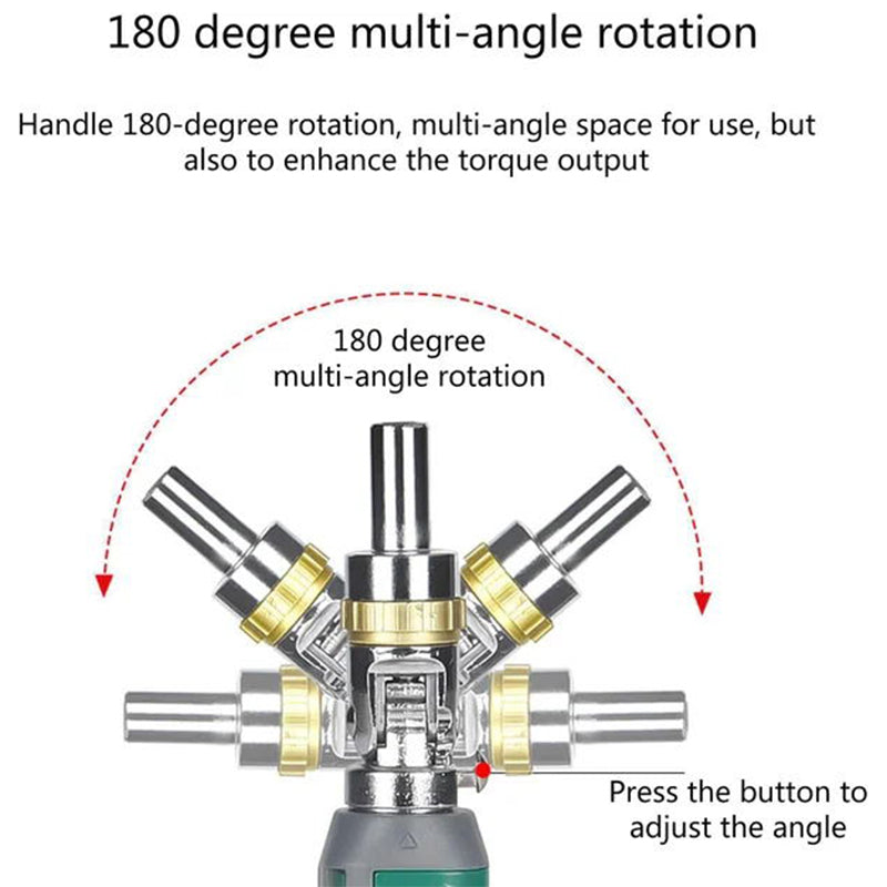 OBRÓT O 180 STOPNI: Uchwyt obraca się o 180 stopni, dostosowując się do różnych kątów i przestrzeni w celu zwiększenia momentu obrotowego i skuteczności.