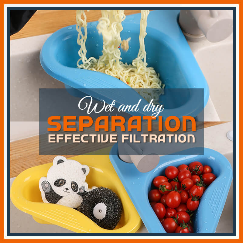 - Wielofunkcyjny wiszący stojak filtrujący pomaga oddzielać mokre i suche odpady spożywcze, skutecznie filtrując zanieczyszczenia, odprowadzając wodę i eliminując zatkane zlewy!