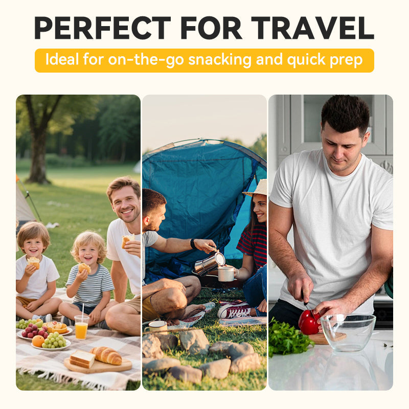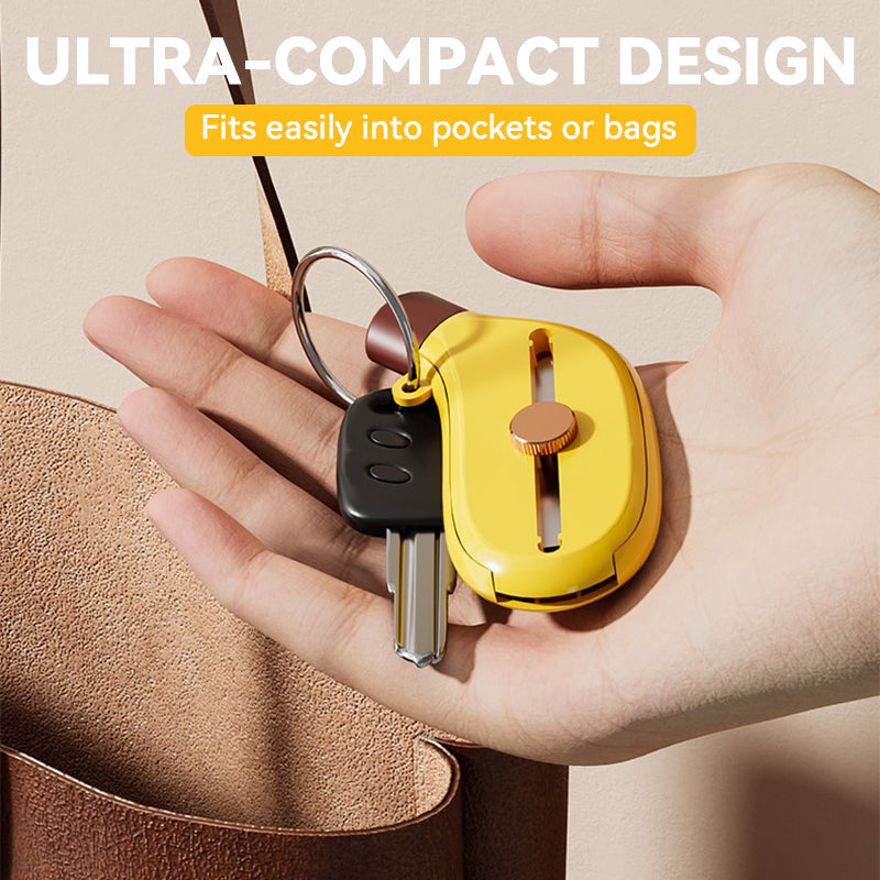 Łączy w sobie obieraczkę do owoców, mini nóż i nóż do kartonów w jednym kompaktowym narzędziu — idealnym do codziennych zadań kuchennych, podróży i rozpakowywania pudełek.
