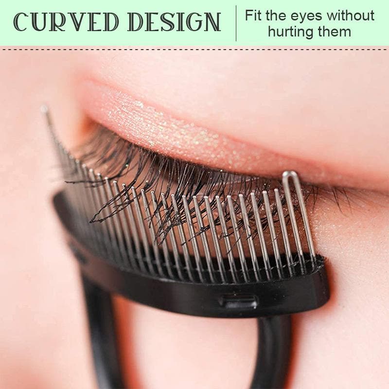 Zakrzywiony grzebień idealnie dopasowuje się do konturów oka, dzięki czemu za każdym razem gładko przesuwa się po rzęsach; odstępy między zębami są idealnie dopasowane do rzęs.