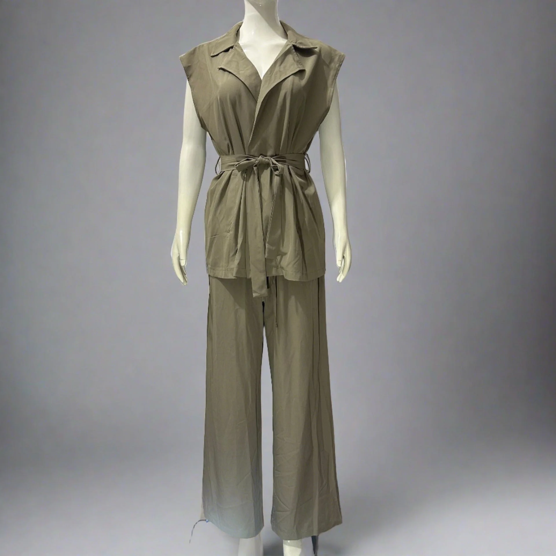 ✨Modny dwuczęściowy zestaw spodni bez rękawów z wysokim stanem