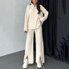 💖Wygodny dwuczęściowy komplet damski z prążkowanej dzianiny z rozcięciem
