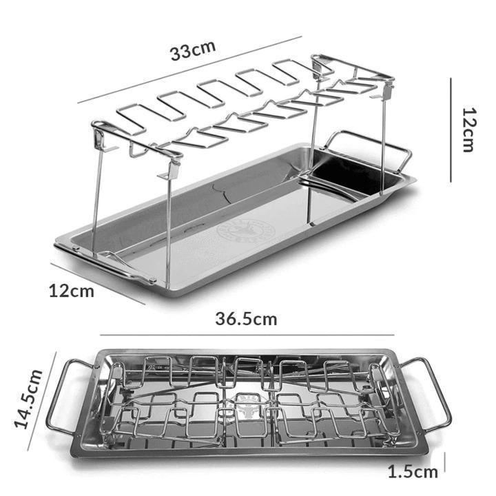 Stojak na udka kurczaka firmy gwarantuje niezapomniane wrażenia z kurczaka. Po prostu zawieś udka kurczaka w ramce i włóż do piekarnika lub grilla. Wszystkie nogi smażymy równomiernie ze wszystkich stron, aż będą chrupiące i brązowe. Soki po prostu skapują i można je wykorzystać jako sos.