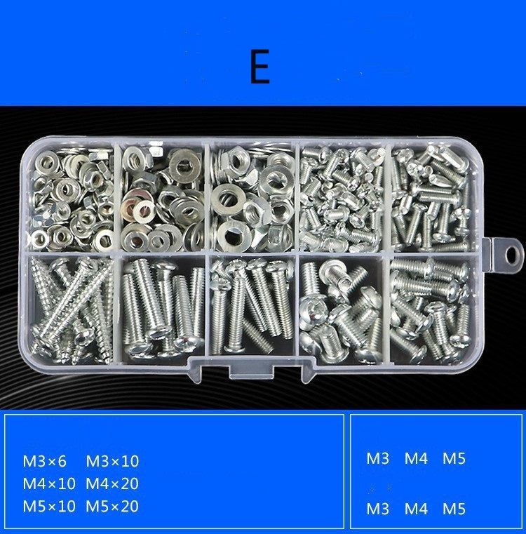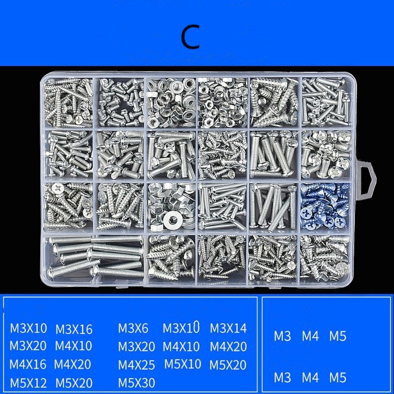 Śruby są starannie uporządkowane w trwałym pudełku do przechowywania, dzięki czemu łatwo jest znaleźć odpowiednią śrubę do pracy, zachowując porządek i organizację miejsca pracy.
