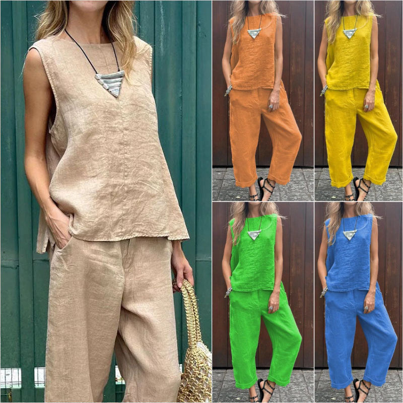 💟Damski strój 2-częściowy Luźny top bez rękawów i długie spodnie🙆♀️