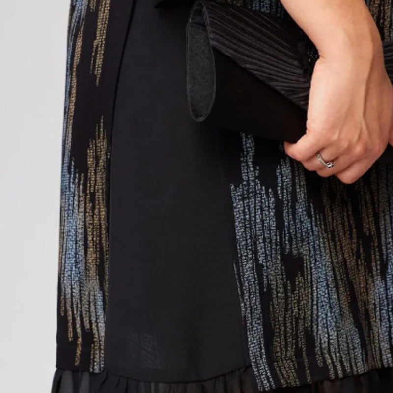 PIONOWE PASKI WYSZCZUPLAJĄCE: Strategicznie rozmieszczone czarne paski tworzą wydłużające złudzenie optyczne, które pasuje do każdego typu sylwetki. Klasyczny wzór zapewnia ponadczasowe wyrafinowanie, jednocześnie subtelnie podkreślając styl.