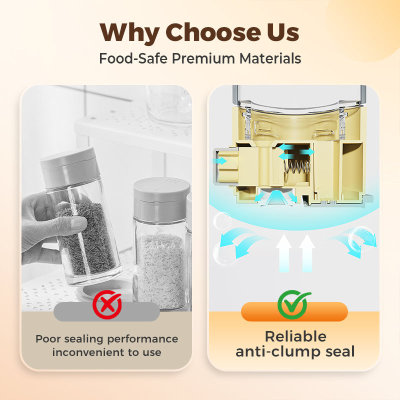 ŚWIEŻOŚĆ ZAMKNIĘTA, WILGOĆ ZABLOKOWANA – Nasza plomba ochronna skutecznie blokuje wilgoć i oleje kuchenne. Przyprawy pozostają idealnie suche i sypkie, nigdy nie twardniejąc we frustrującą bryłę. Poczuj radość z zawsze gotowych składników na wyciągnięcie ręki.