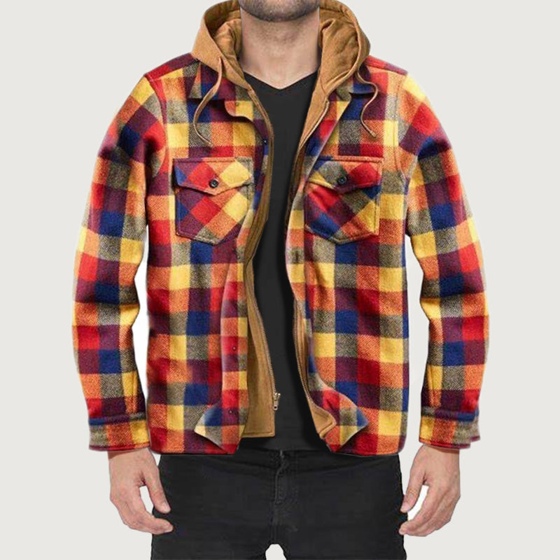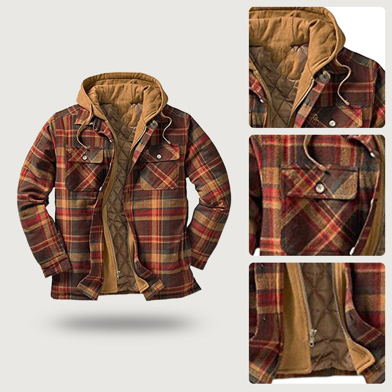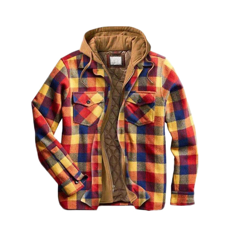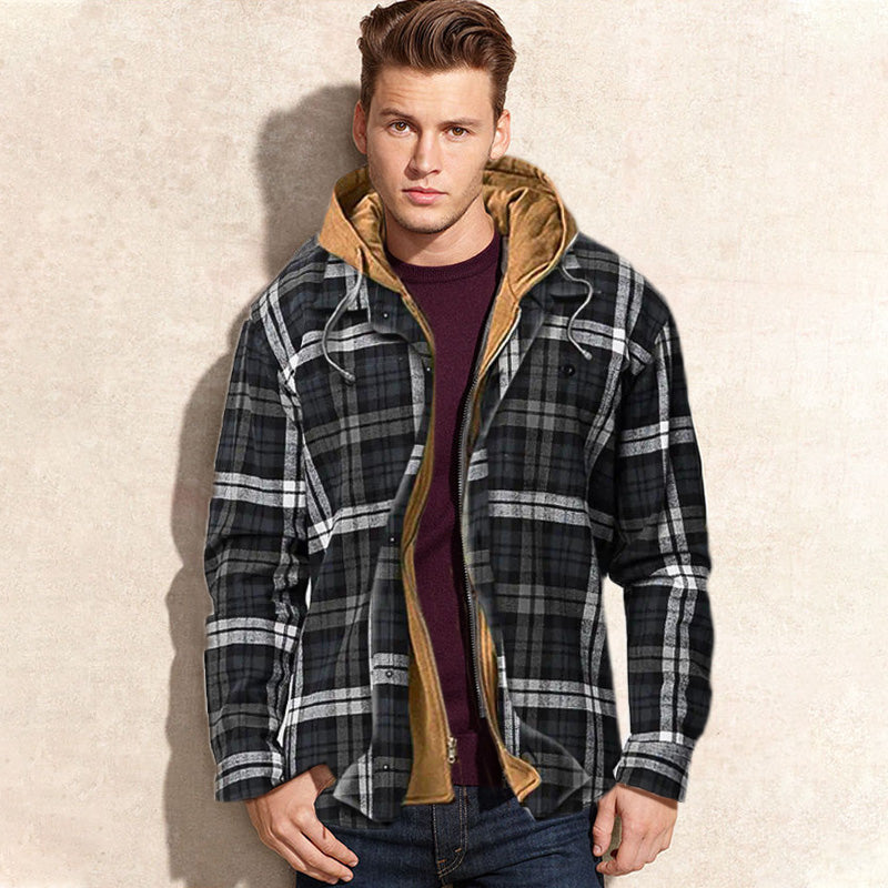 [Ciepły prezent] Pikowana kurtka z podszewką w kratę i kapturem dla mężczyzn