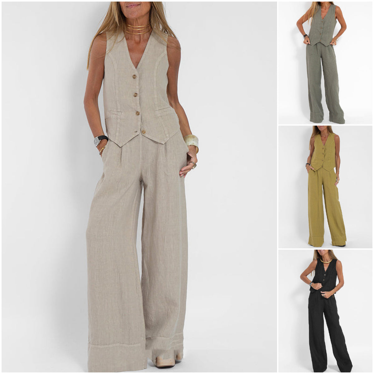 🌷2025 Wiosenne nowości 🥰 Damski dwuczęściowy komplet składający się z lnianej kamizelki i szerokich spodni