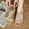 Wzór z kryształu górskiego - Te antypoślizgowe sandały na koturnie z miękką podeszwą to obowiązkowy element garderoby każdej fashionistki. Wzór z kryształkami sprawia, że łatwo je dopasować do każdego stroju. Obcasy klinowe emanują elegancją, a błyszczący wygląd jest seksowny i przyciągający wzrok.