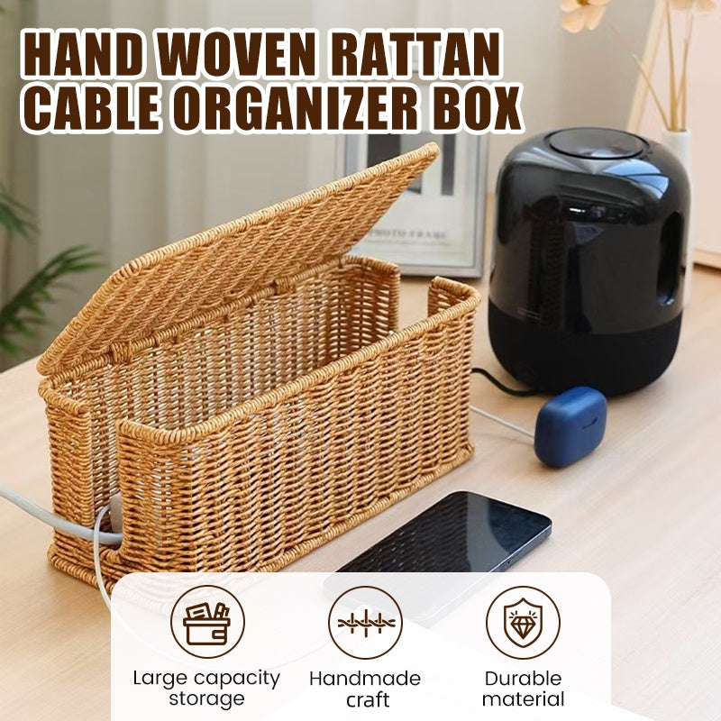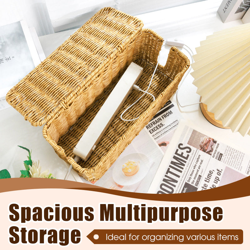 📦Ręcznie tkany organizer z rattanu z pokrywką