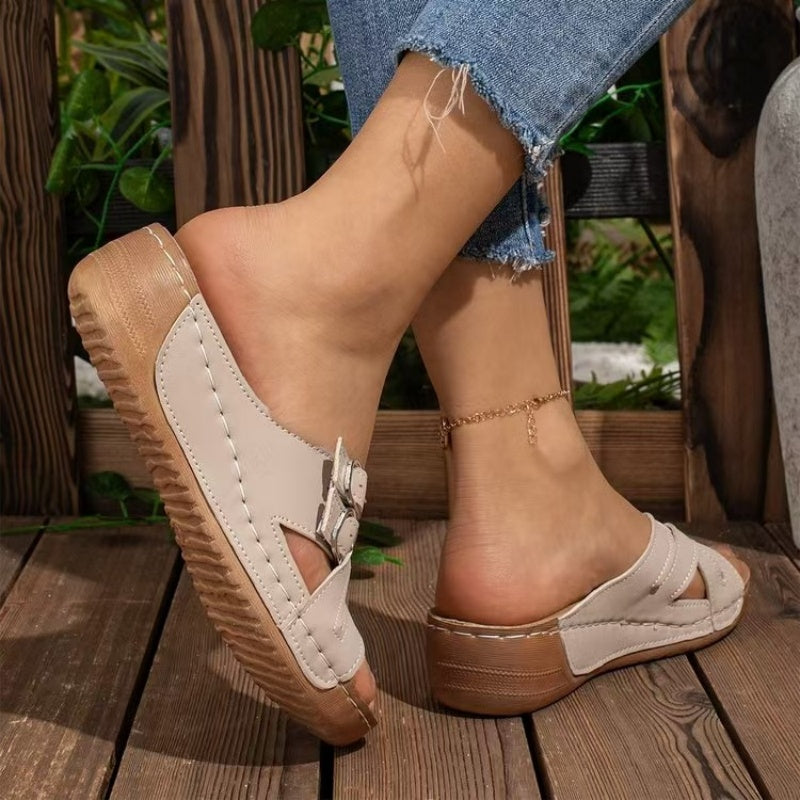 KOMFORTOWE PODNOSZENIE KLINA: Zaprojektowane z platformą klinową, sandały te zapewniają naturalny wzrost wysokości bez uszczerbku dla stabilności i komfortu.
