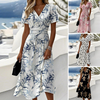 1* Damska modna sukienka midi z nadrukiem z dekoltem w szpic