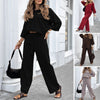 Zestaw damski z długim rękawem i spodniami w jednolitym kolorze