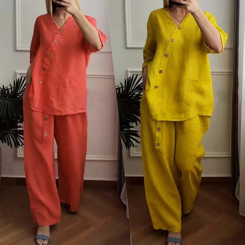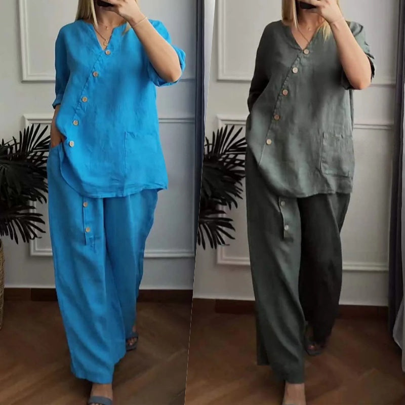 💥Damski 2-częściowy zestaw z eleganckim zdobieniem na guziki