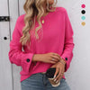 🌈Damski sweter z długim rękawem i okrągłym dekoltem, zapinany na guziki