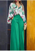 Damska koszula w kwiaty i spodnie z szerokimi nogawkami i wysokim stanem (1 zestaw)