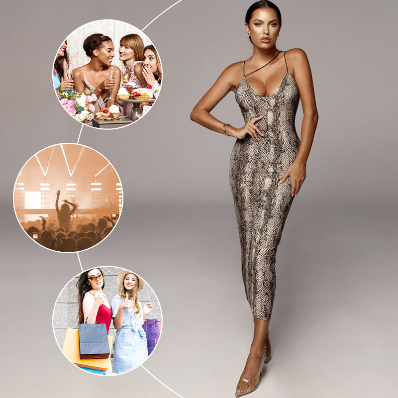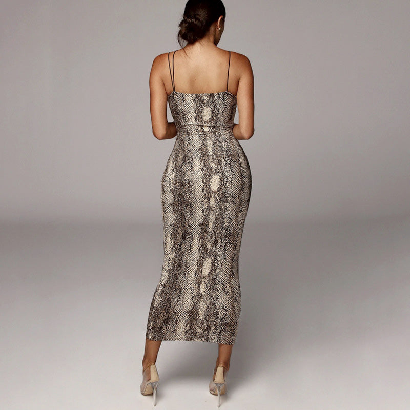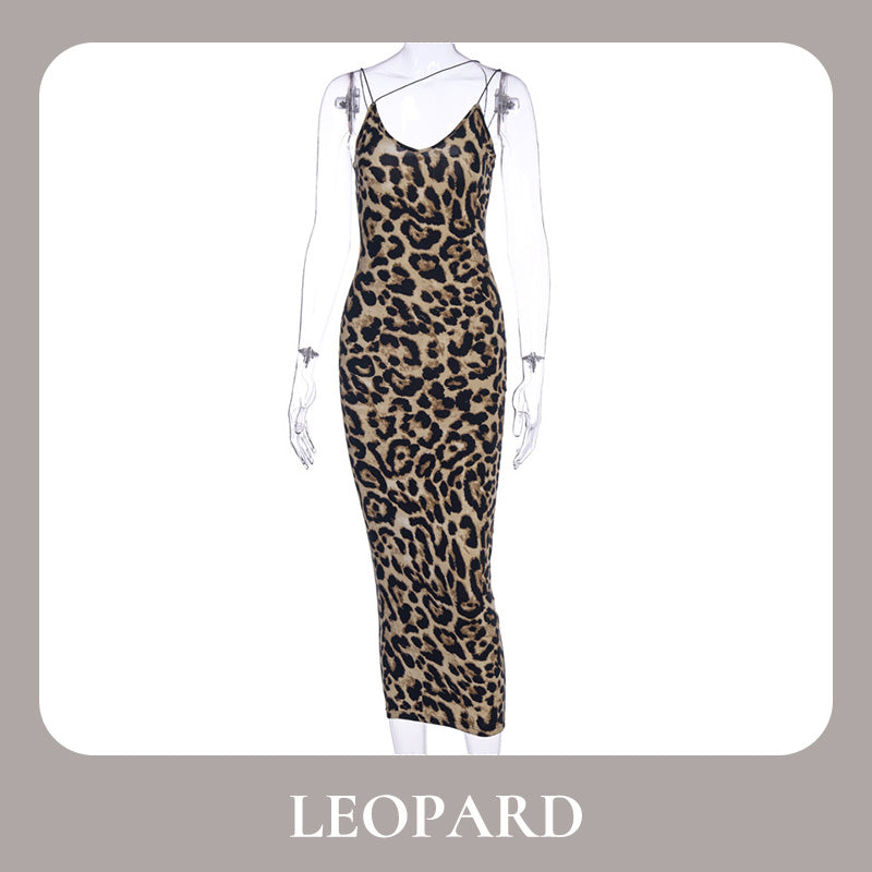 Pakiet zawiera: 1 * Seksowna damska sukienka Bodycon Maxi z ramiączkami w panterkę / węża