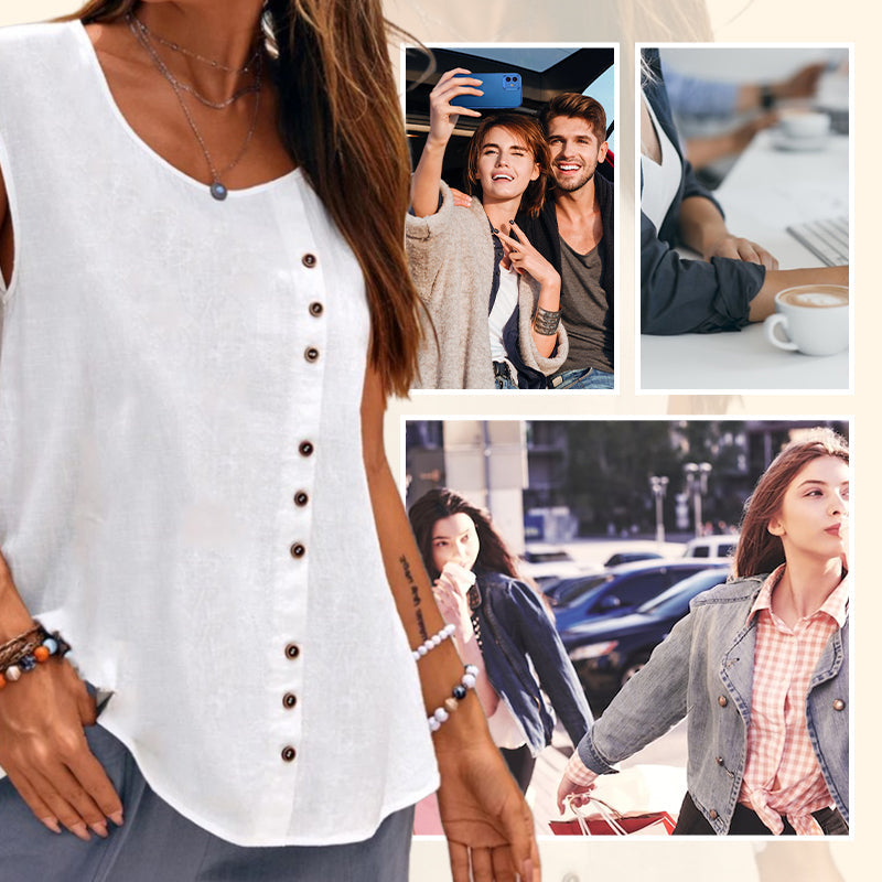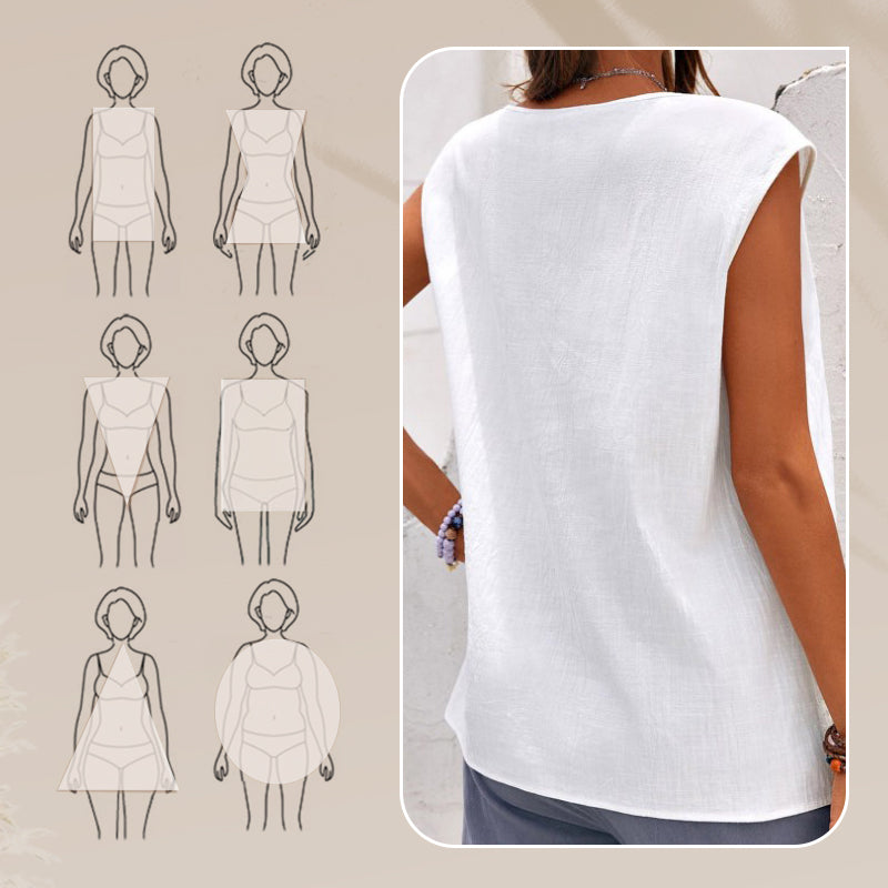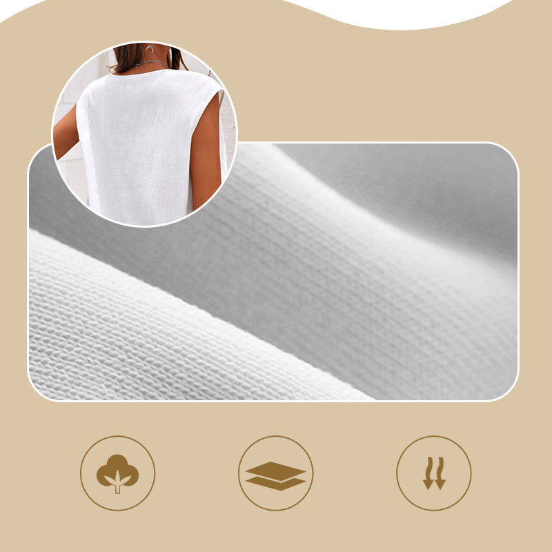 NOWOCZESNY, LUŹNY STYL: Luźna sylwetka z czystymi liniami, które bez wysiłku łączą modę i wygodę. Bezrękawnik i okrągły dekolt tworzą wszechstronną podstawę, która idealnie pasuje pod marynarki lub samodzielnie do noszenia w ciepłe dni, oferując nieograniczone możliwości stylizacji.
