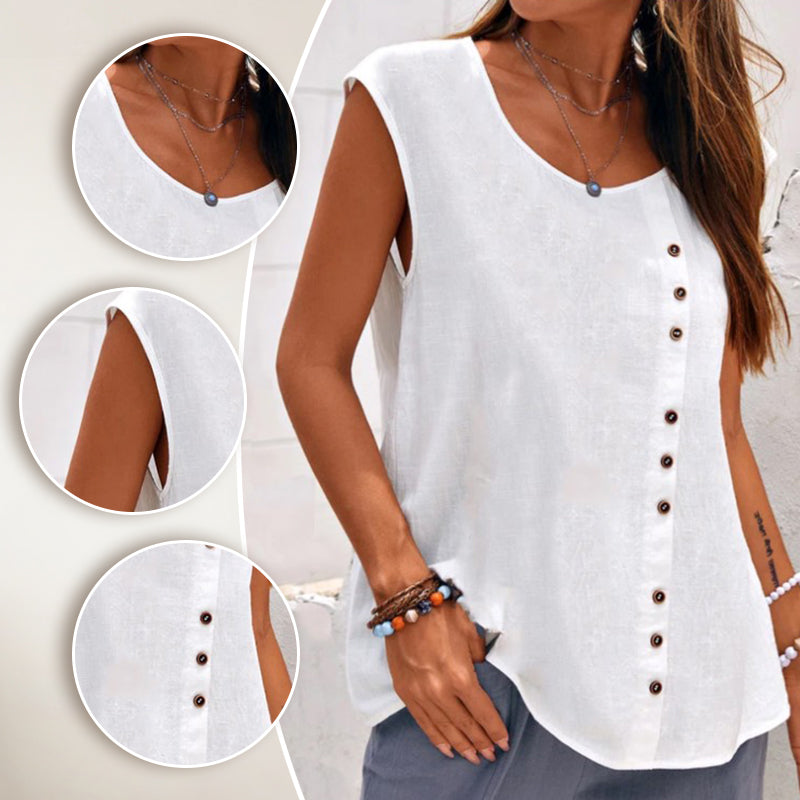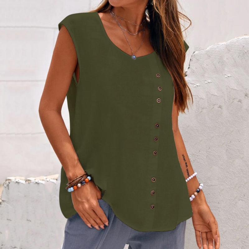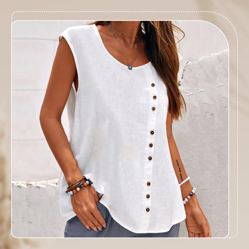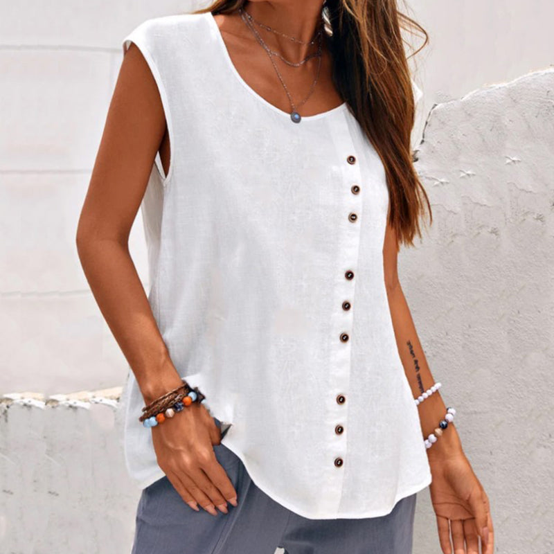 Zawartość opakowania: 1* damski luźny top bez rękawów z okrągłym dekoltem