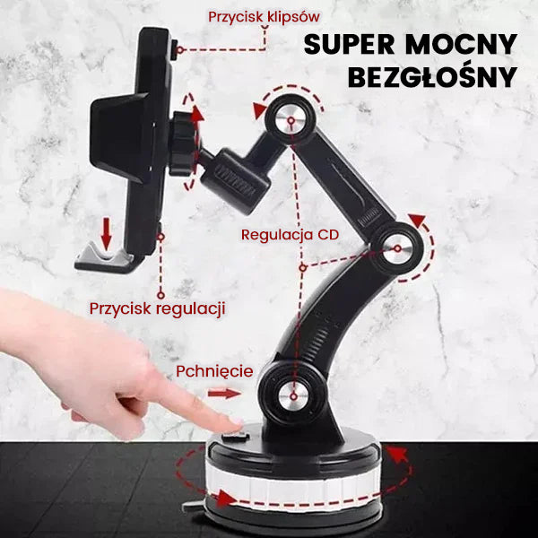 SILNA PRZYSSAWKA: Samochodowy uchwyt na telefon wielokrotnego użytku przylega do deski rozdzielczej i przedniej szyby, zapewniając mocne mocowanie i doskonałą przyczepność.